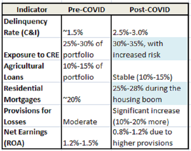 Macroeconomic statistics related to bank lending, including categories such as CRE, C&I, and agricultural lending.
