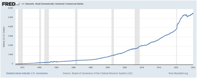 Deposits in small banks continue to rise at or around the same rate as loans granted, only that these loans are riskier.