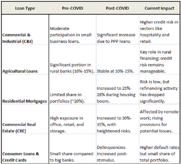 The business model of each type of bank is illustrated by its share of different types of loans.